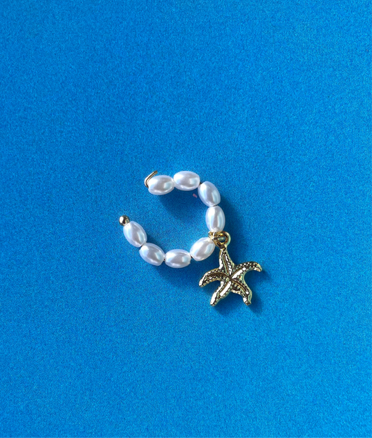 Gold Starfish Pearl Ear Cuff
