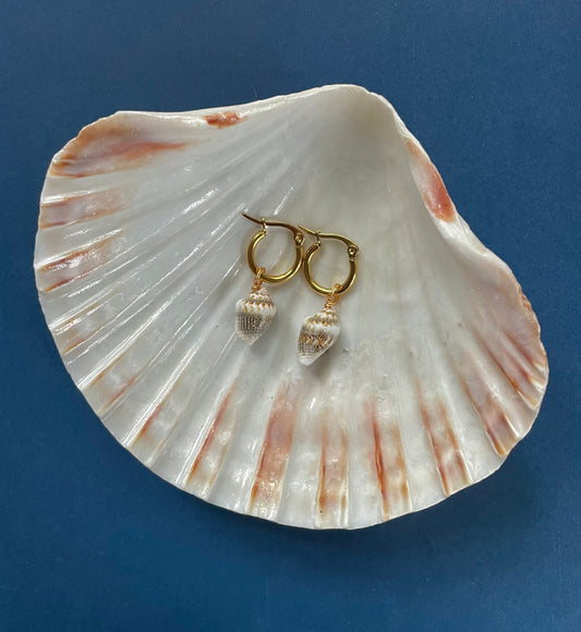 Small Gold Sea Foam Cowrie Hoop Earrings