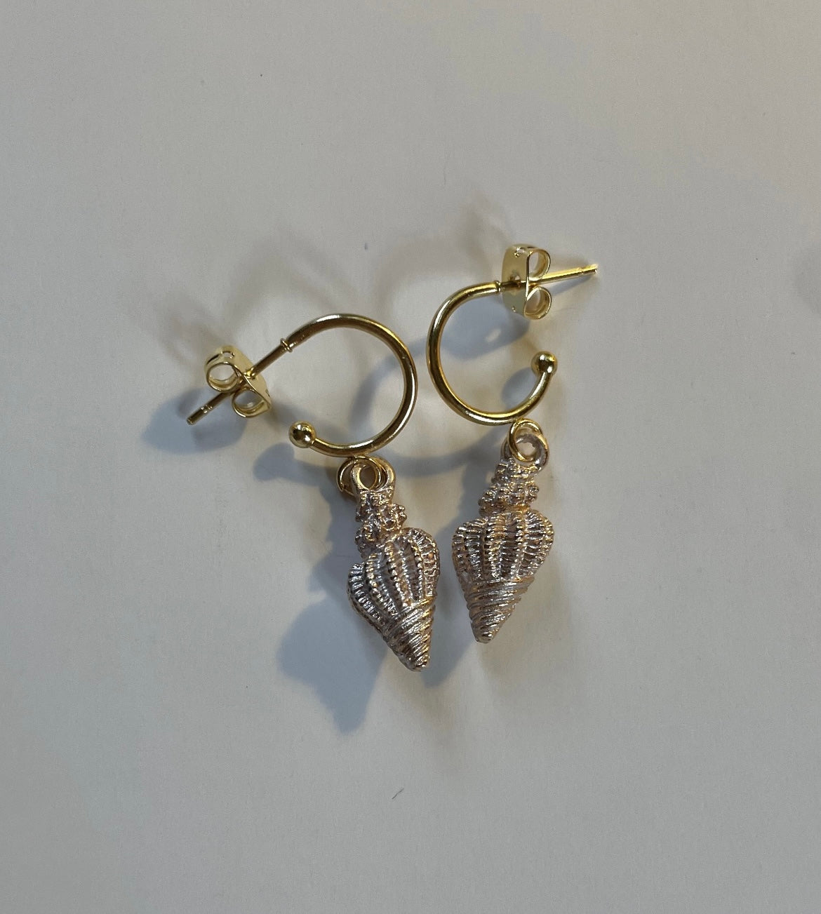 •Pink shell charms on small 24K gold plated stainless steel hoops